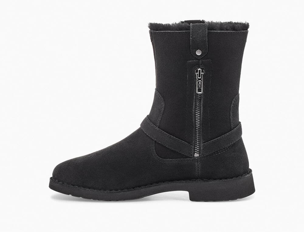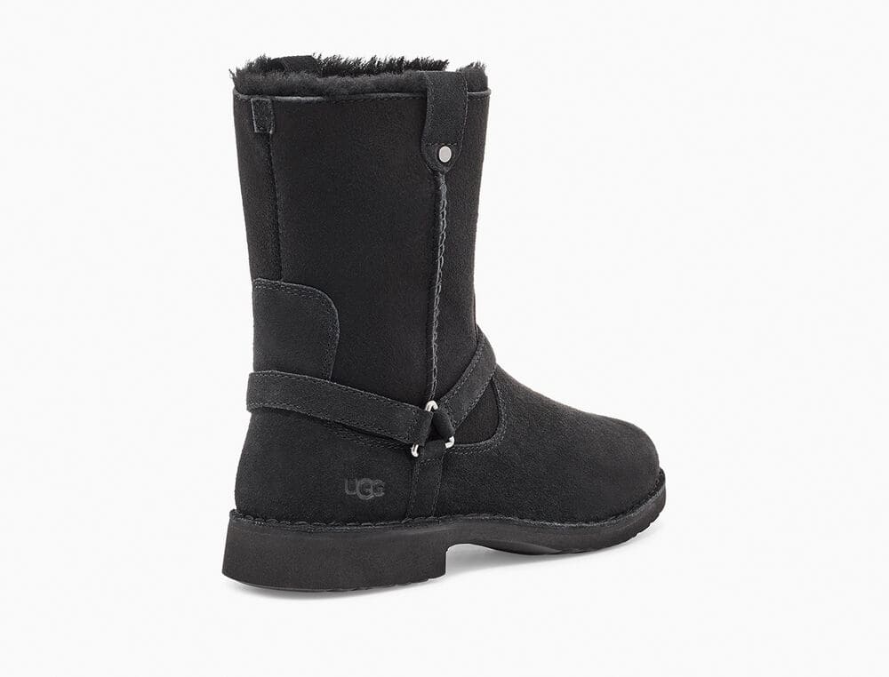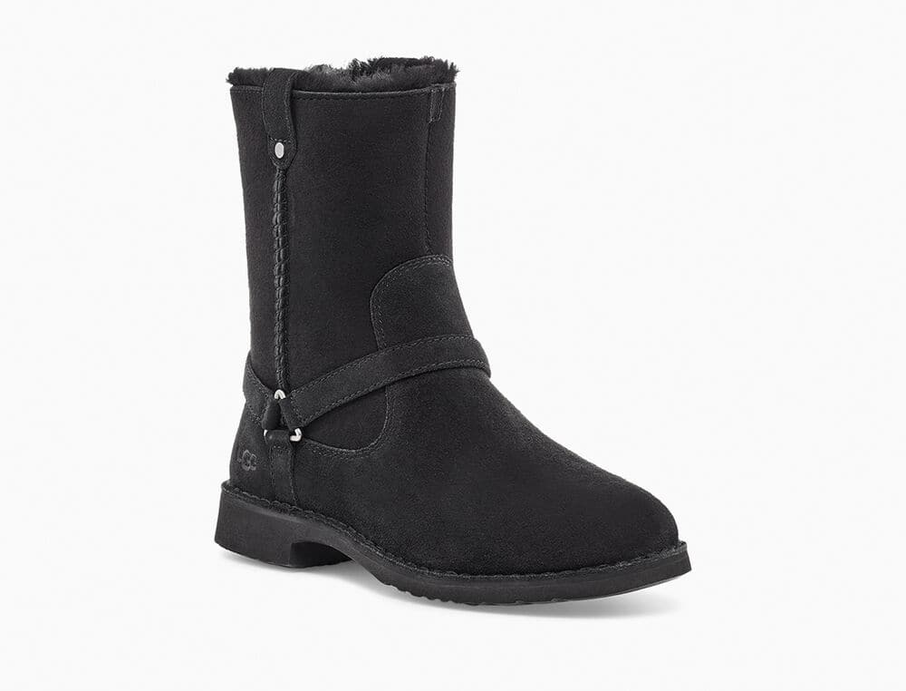Harness strapping and riveted pull tabs add moto edge to this cozy suede boot. Pre-treated to help keep it looking better for longer, the Aveline is lined with our signature UGGplush™ wool blend for an ultra-cozy feel, and incorporates a side zip for easy on-off. Rev it up with a leather jacket and vintage band tee, or go easy with skinny jeans and an oversized sweater.