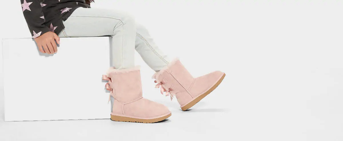 ![]() We added sweet silky bows to your little one's favorite boot, but kept the super-soft sheepskin feel they love. Built to move the way kids do, each boot features a rocker-bottom shape for a barefoot feel and our super-lightweight outsole for traction and durability. This product was made in a factory that supports women in our supply chain with the help of HERproject, a collaborative initiative that creates partnerships with brands like ours to empower and educate women in the workplace. Protected: Post Applied Treatment Topically applied water repellency treatment 17mm Twinface sheepskin upper Fixed satin bows along back shaft 17mm UGGpure™ wool insole Foam footbed Treadlite by UGG™ outsole for comfort Polyester binding 6" shaft height Woven heel label with UGG® logo Best for: Casual |