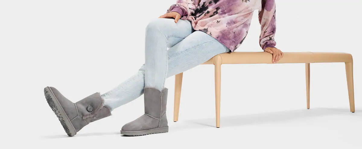 ![]() Embellished with a wood-button closure, this plush sheepskin boot is more versatile than ever – fasten for extra warmth, or fold down for a full, fluffy collar. Finished with our signature sole for added cushioning, traction, and durability, it pairs with silky dresses or overalls and a tee. Protected: Post Applied Treatment Topically applied water repellency treatment 17mm Twinface sheepskin upper Wood button and elastic closure, Suede heel counter 17mm sheepskin lining 17mm sheepskin insole Treadlite by UGG™ outsole for comfort Polyester binding 7.5" shaft height Leather heel label with embossed UGG® logo Best for: Casual |