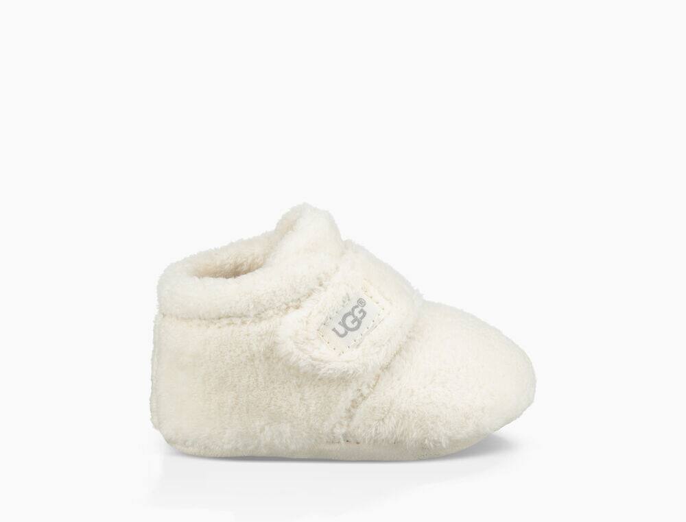 Duffield Lovey: Cozy fleece textile Satin trim Woven label with UGG® logoBixbee Bootie Fleece upper Hook-and-loop closure Fleece lining Microfiber outsole with slip resistant print 2.25" shaft height Machine Washable Woven label with UGG® logo |