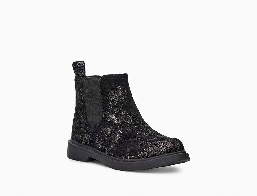 A sparkly statement boot with chelsea-style stretch, this stylish kids’ design is crafted from metallic suede for a shimmery statement. Adding a host of kid-friendly features like easy-entry zippers, cushioned footbeds, and antimicrobial lining to keep little feet fresh, it’s finished with a durable rubber outsole, and pairs with anything from denim to dresses.