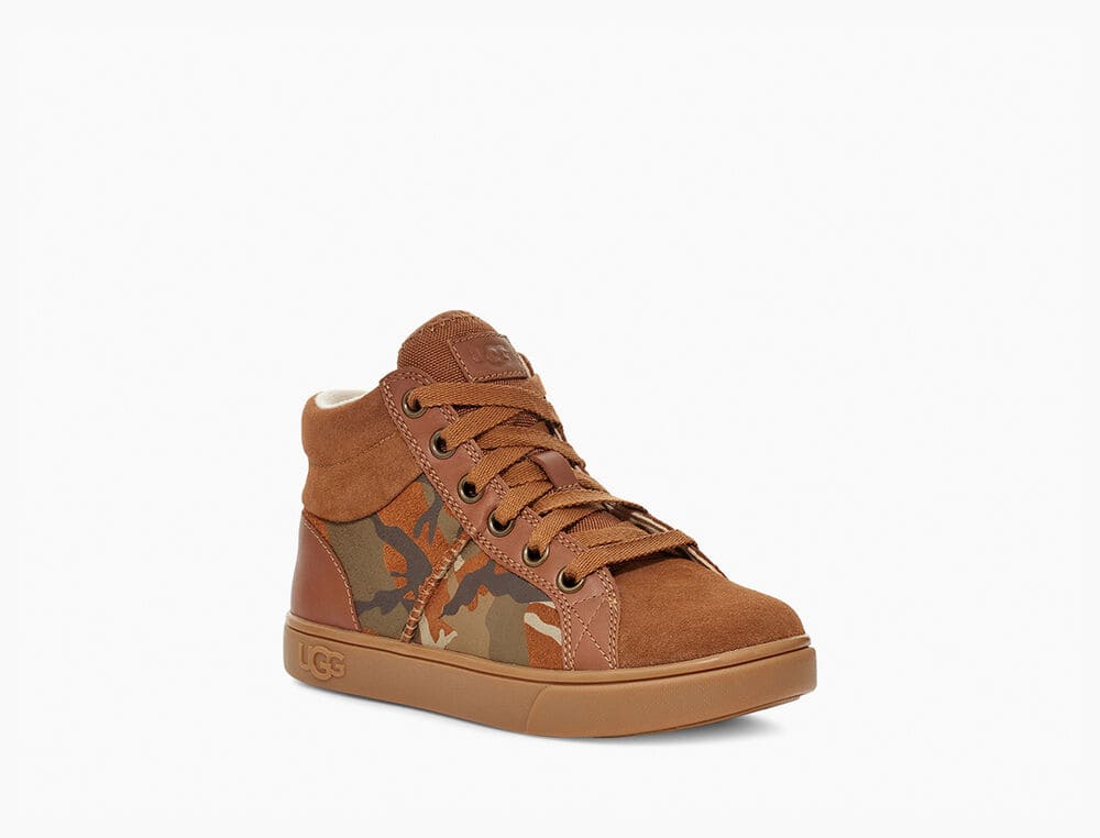 Updating our Boscoe Sneaker, this lively suede hi-top features camouflage panels for extra kick. Incorporating kid-friendly benefits like an easy-entry zipper, antimicrobial lining, and a rugged rubber outsole for active play, it pairs with everything from weekend jeans and cargo shorts to sweatpants and khakis.