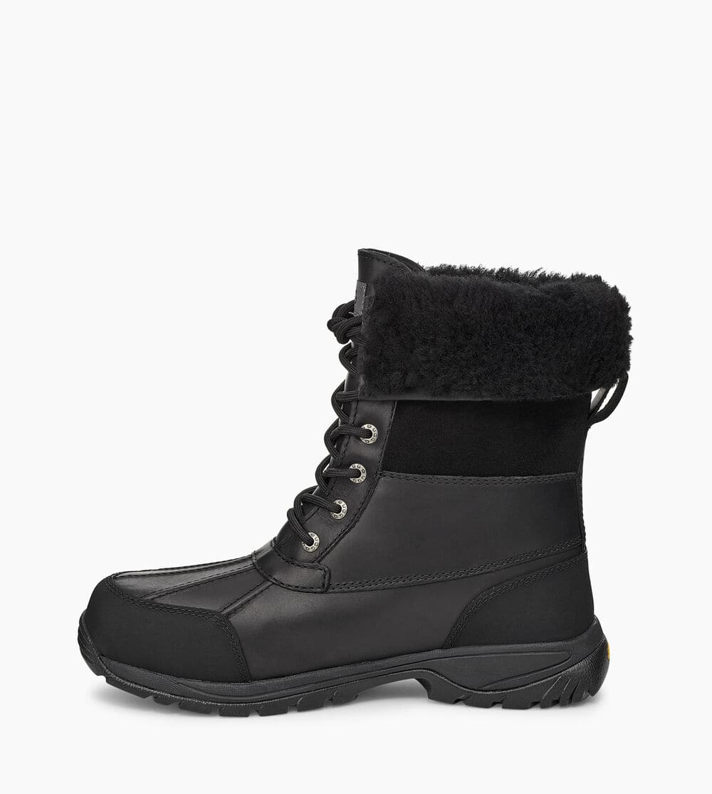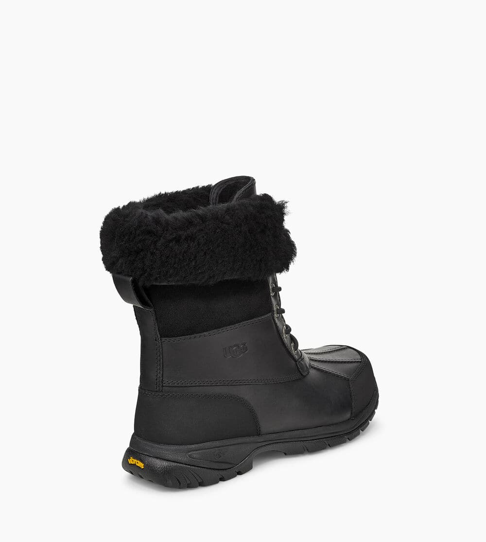 Packed with technology, our cuffable Butte boot is cold-weather rated to -32˚C (or -25.6˚F) and features waterproof bootie construction, warming insulation, and innovative Vibram® outsoles designed to stay flexible in freezing temps. Rugged on the outside and cozy on the inside, it’s made from waterproof full-grain leather and lined with soft sherpa, adding our innovative UGGpure™ wool blend for all-day wearability in the mountains or the city.