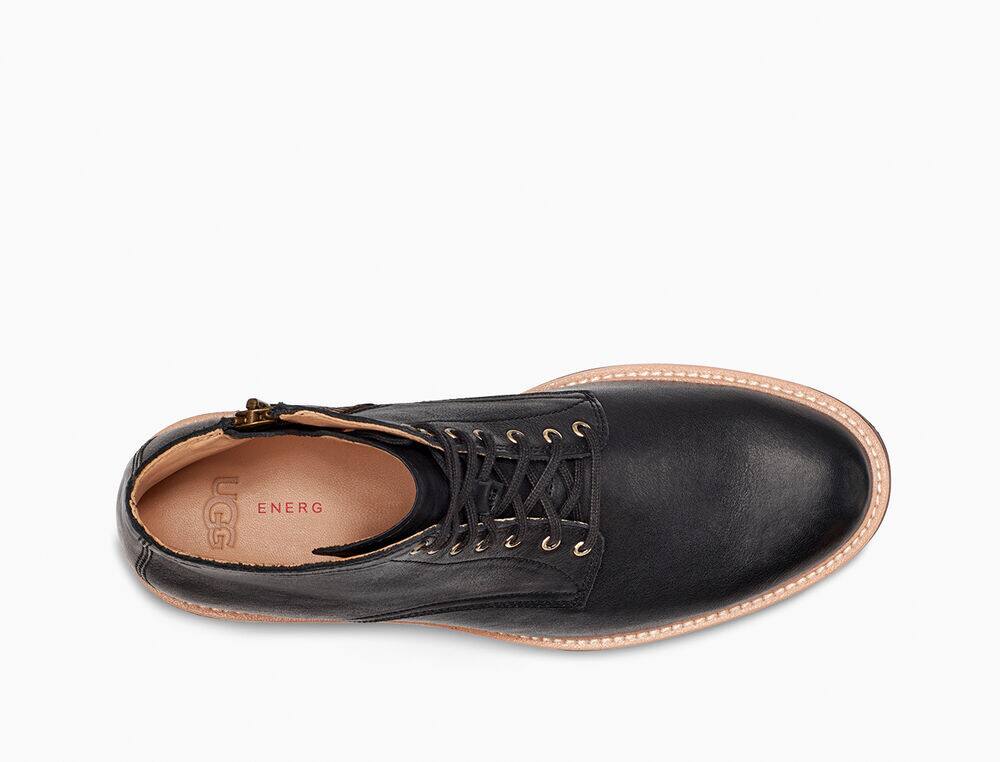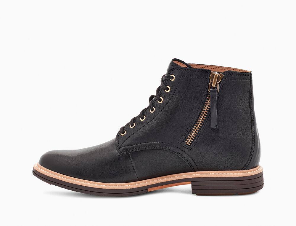 Full-grain leather upper Medial zipper Lamb leather lining enerG Comfort System footbed Treadlite by UGG™ outsole with rubber toe and heel Heat-embossed UGG® logo |