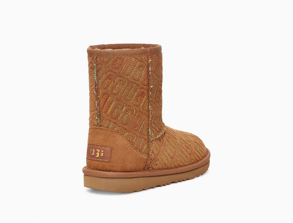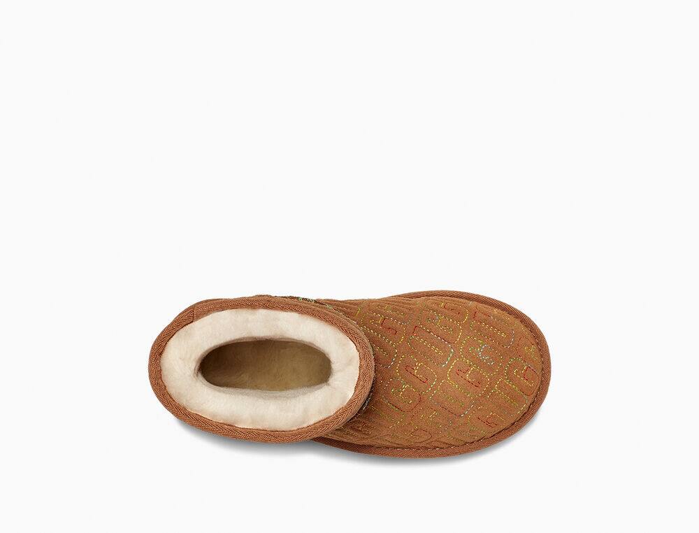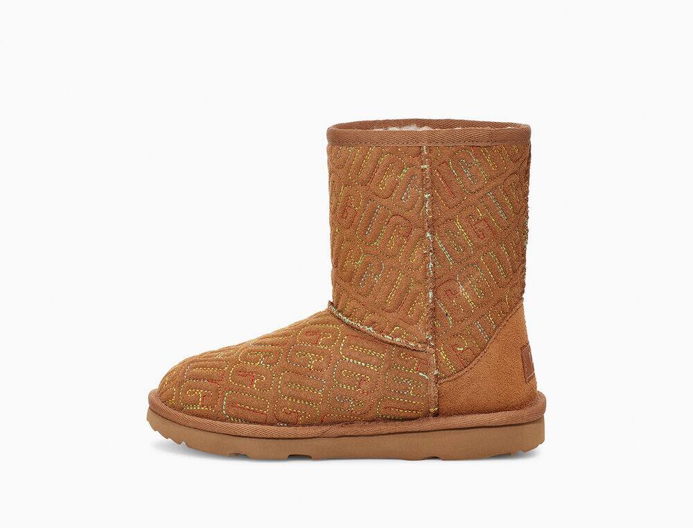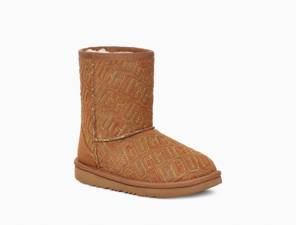 Scaling down our grown-up Classic Boot, this kids' update adds colorful graphic logo stitching to the rich suede upper for a playful statement. Down below, our super-light sole offers great traction and longevity, while the cozy UGGplush™ lining keeps little feet happy. Built to move the way kids do, each boot incorporates a cushioned foam insole for all-day play, and pairs with anything from jeans to dresses.