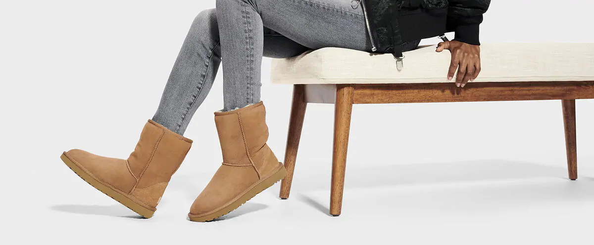 ![]() Our Classic boot was originally worn by surfers to keep warm after early-morning sessions, and has since become iconic for its soft sheepskin and enduring design. Incorporating a durable, lightweight sole to increase cushioning and traction, these versatile boots pair well with practically anything – try loose boyfriend jeans and a velvet top. This product was made in a factory that supports women in our supply chain with the help of HERproject, a collaborative initiative that creates partnerships with brands like ours to empower and educate women in the workplace. Protected: Post Applied Treatment Topically applied water repellency treatment 17mm Twinface sheepskin upper Overlock stitch detailing on seams, Suede heel counter 17mm sheepskin lining 17mm sheepskin insole Treadlite by UGG™ outsole for comfort Polyester binding 8" shaft height Leather heel label with embossed UGG® logo Best for: Casual |