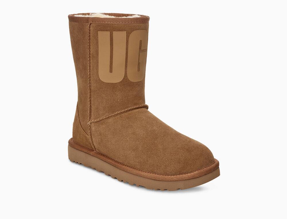 Home ::  Womens ::  Classic Boots ::  UGG Classic Short UGG Rubber Logo Classic Boots for Womens - Chestnut/Brown India