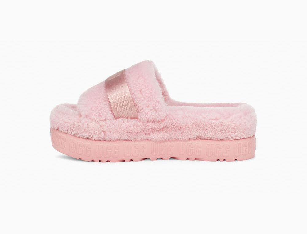 ![]() Evolving our iconic fluff sandals, the Fluffita is a flatform with everything you love about UGG. Featuring an adjustable strap and contoured footbed for a custom feel, it's lined with curly sheepskin and punctuated with bold graphic logo detailing. Wear it indoors or out with a colorful dress, denim, and a band tee. Curly sheepskin upper Webbing vamp strap with UGG® graphic logo, Metal buckle 10mm curly sheepskin lining 10mm curly sheepskin insole UGG® graphic molded EVA outsole 1.75" heel height Woven label with UGG® logo on insole |