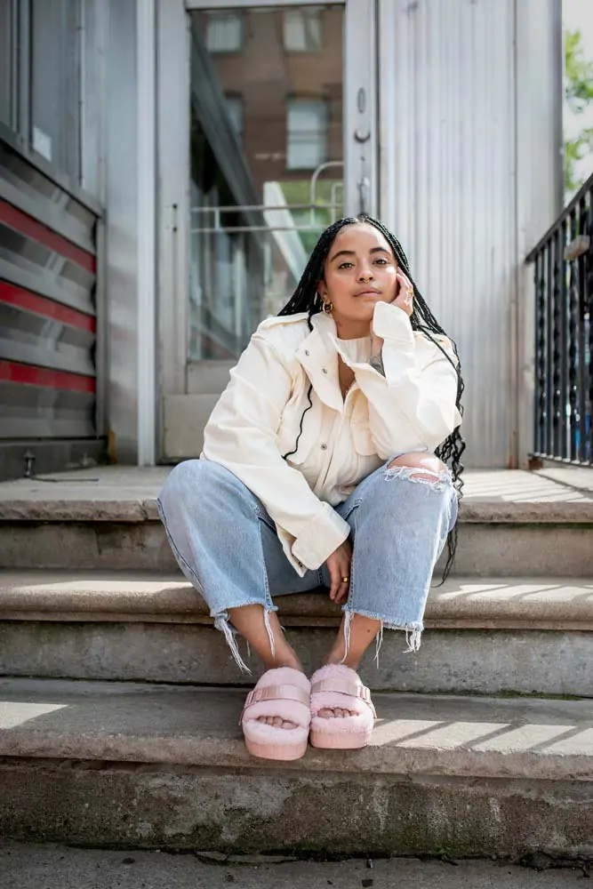 Evolving our iconic fluff sandals, the Fluffita is a flatform with everything you love about UGG. Featuring an adjustable strap and contoured footbed for a custom feel, it's lined with curly sheepskin and punctuated with bold graphic logo detailing. Wear it indoors or out with a colorful dress, denim, and a band tee.