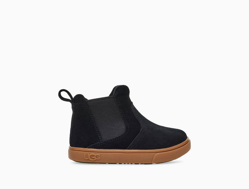 Suede upper Elastic gore Medial zipper Antimicrobial lining Foam footbed Molded rubber outsole Heat-embossed UGG® logo |