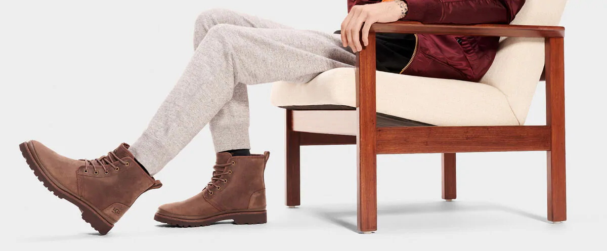 Lined with the same warm UGGpure™ wool blend as the original, we took our best-selling Harkley to the next level with state-of-the-art Vibram® outsoles that are much lighter than traditional workboot soles, providing premium cushion, flex, and shock absorption. Featuring waterproof leather and seam-sealed construction, this suede hybrid style is up for anything, and looks great paired with graphic socks and cuffed jeans.