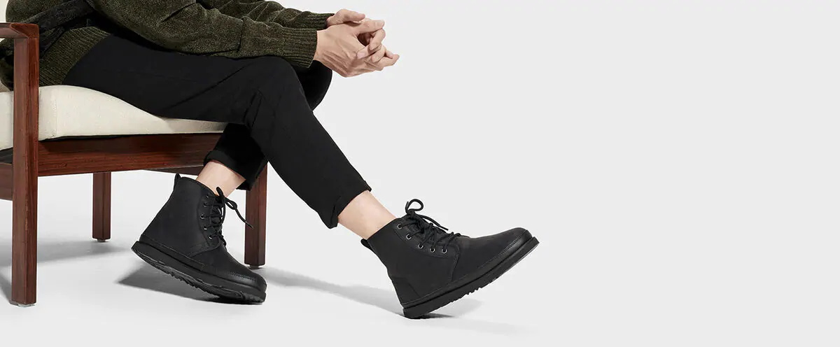 Your favorite lace-up boot now incorporates waterproof features to help keep you looking better for longer. Crafted from seam-sealed waterproof leather lined in our ultra-soft UGGpure™ wool blend, this update to the Harkley is equally stylish, and perfect for light-to-moderate weather conditions.