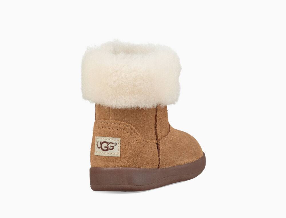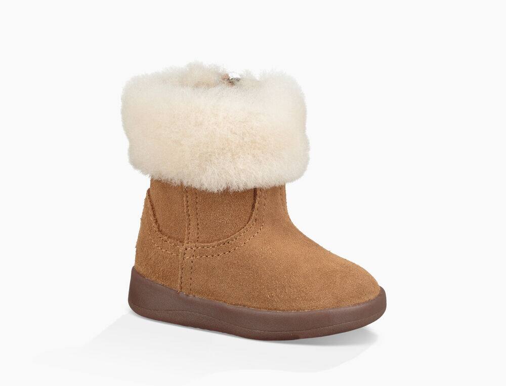 With its glamorous fluffy trim, this boot makes a cold-weather statement. Super-soft lining keeps the feet cozy, while a light, flexible sole is made specifically to fit your little one as they grow and play.