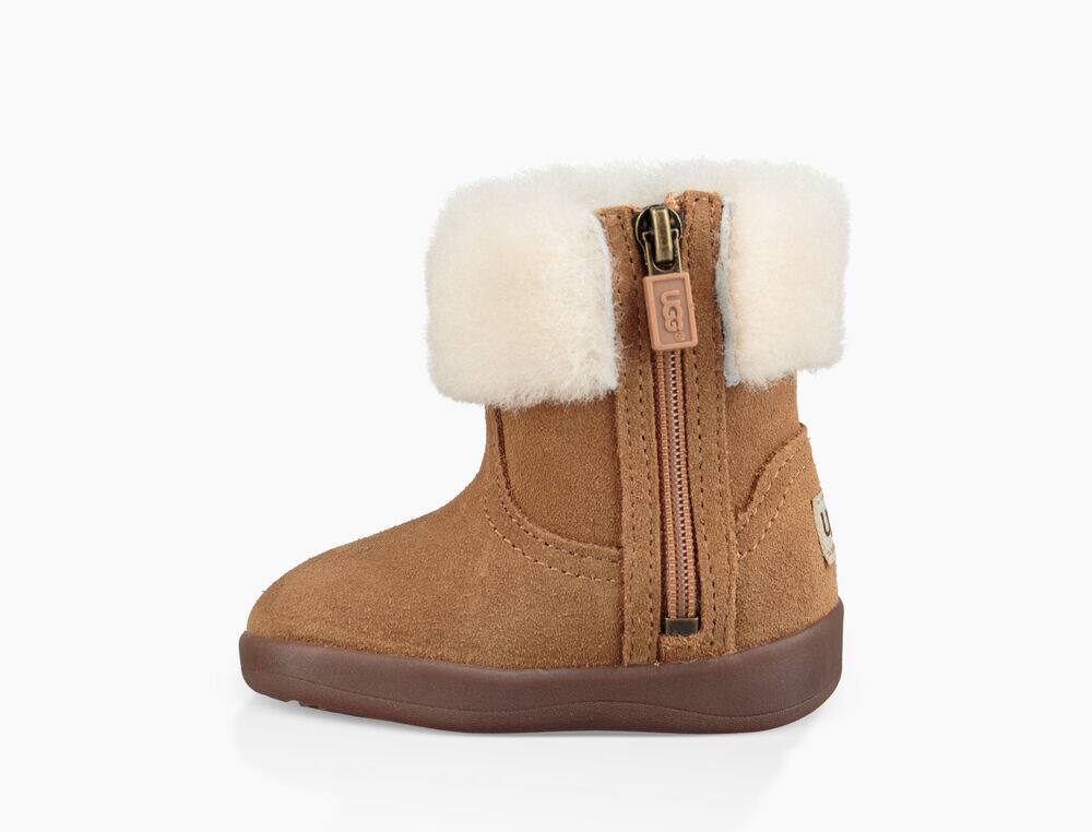 Suede upper Sheepskin collar Medial zipper Antimicrobial lining 10mm UGGpure™ wool insole Molded rubber outsole 3" shaft height |