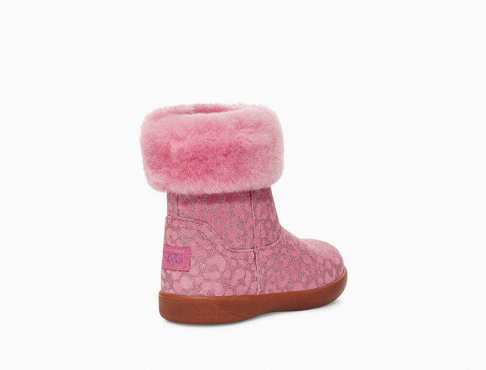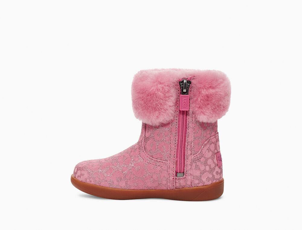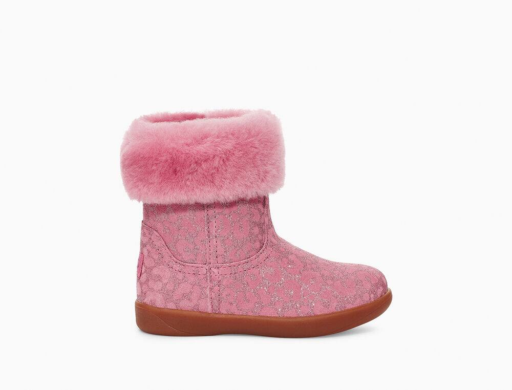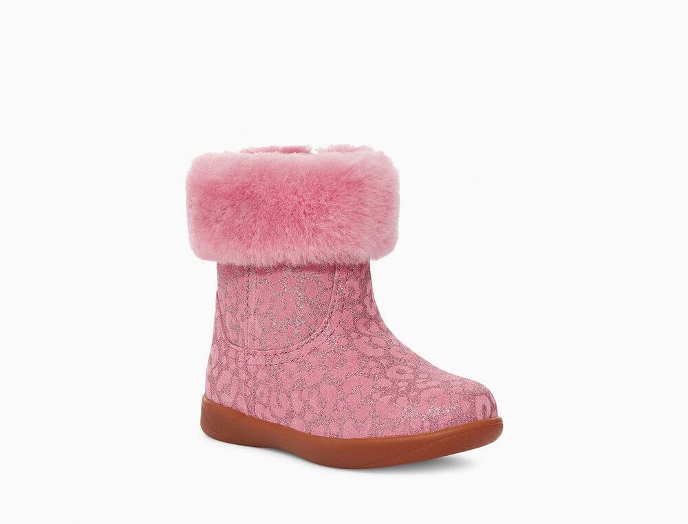 Updated with glitter leopard print for a sparkly statement, the Jorie is specially-made for little feet. Incorporating a molded rubber outsole for everyday adventures, plus antimicrobial lining and an easy-entry zipper, we finish this kid-friendly style with a fluffy sheepskin collar and signature UGGpure™ wool blend insole to keep them cozy. Pair with anything from denim to dresses.