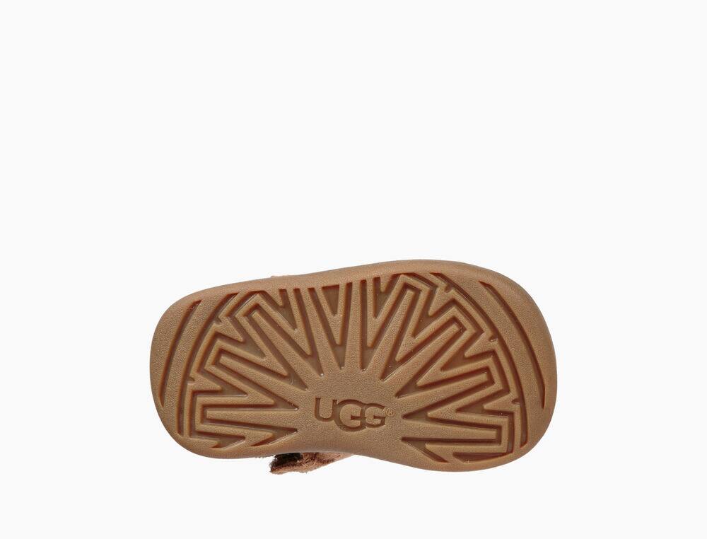 Suede upper Hook-and-loop closure Antimicrobial lining, 10mm sheepskin lining 10mm UGGpure™ wool insole Foam footbed Molded rubber outsole Heat-embossed UGG® logo |