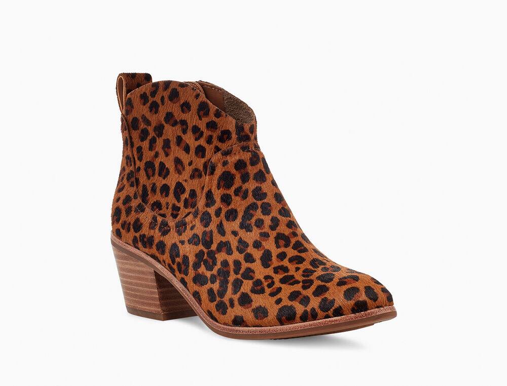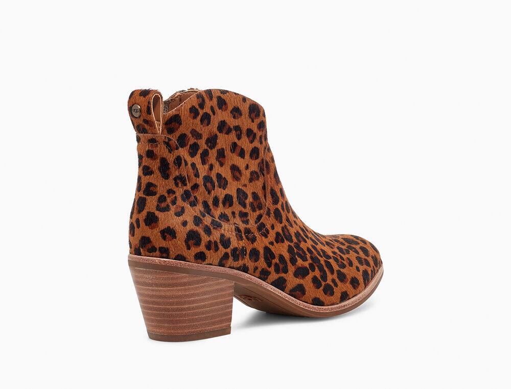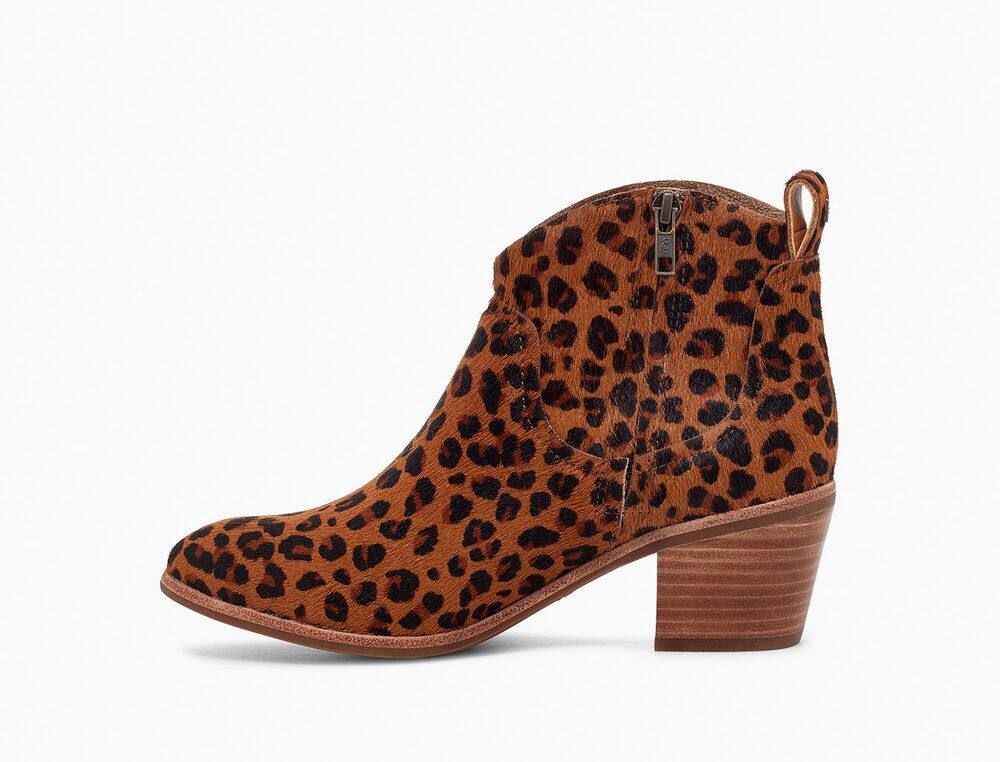 Calf hair upper Rear pull tab Textile lining, Leather heel lining, Synthetic lining Synthetic sockliner & Foam footbed Molded rubber outsole Stacked leather wrapped heel 5.75" shaft height 2" heel height UGG® logo rivet, Heat-embossed UGG® logo Best for: Casual |