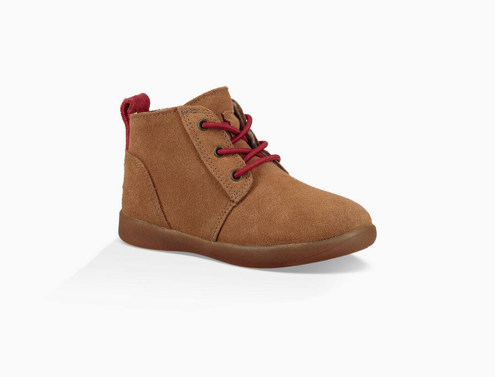 For little walkers, this tiny chukka is crafted with soft suede, breathable lining, and a rubber sole for all-day play. Elastic laces make for a snug fit, while a side zipper allows for easy on and off.