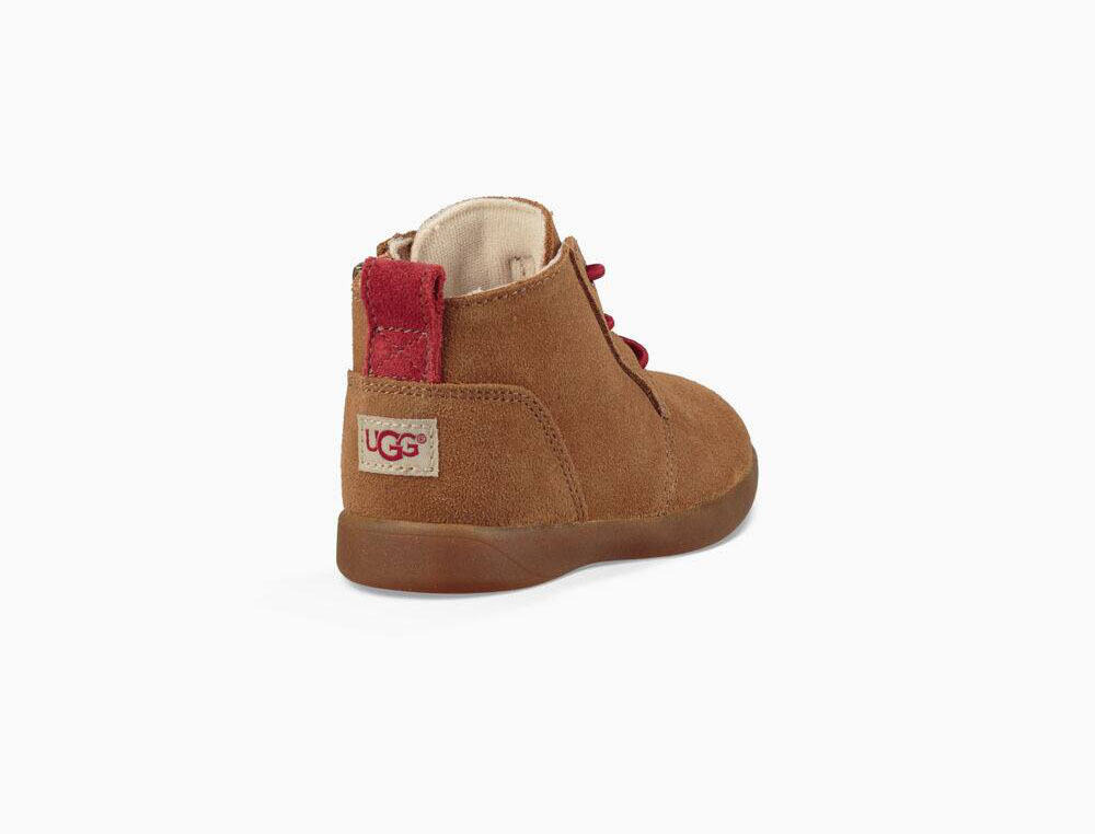 Suede upper Fixed elastic laces, Medial zipper Antimicrobial lining Molded rubber outsole 2" shaft height Woven heel label with UGG® logo |