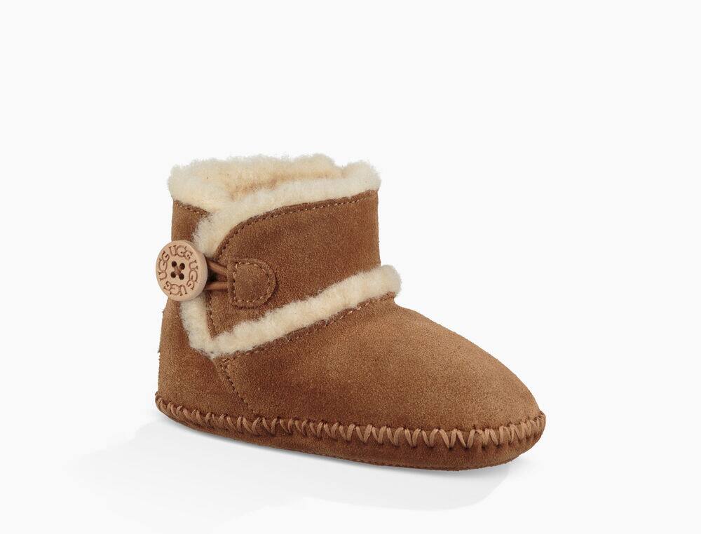 This product was made in a factory that supports women in our supply chain with the help of HERproject, a collaborative initiative that creates partnerships with brands like ours to empower and educate women in the workplace. Suede upper UGGpure™ wool spill seams, Wood button and elastic closure Hook-and-loop closure 7mm UGGpure™ wool lining Suede outsole, Molded rubber outsole 3" shaft height Woven heel label with UGG® logo |