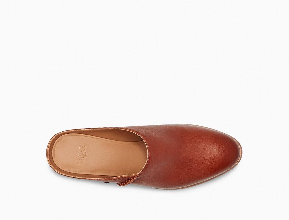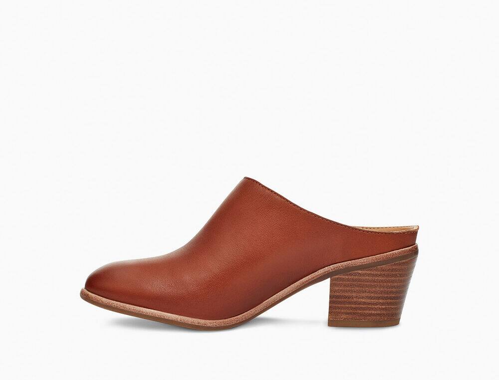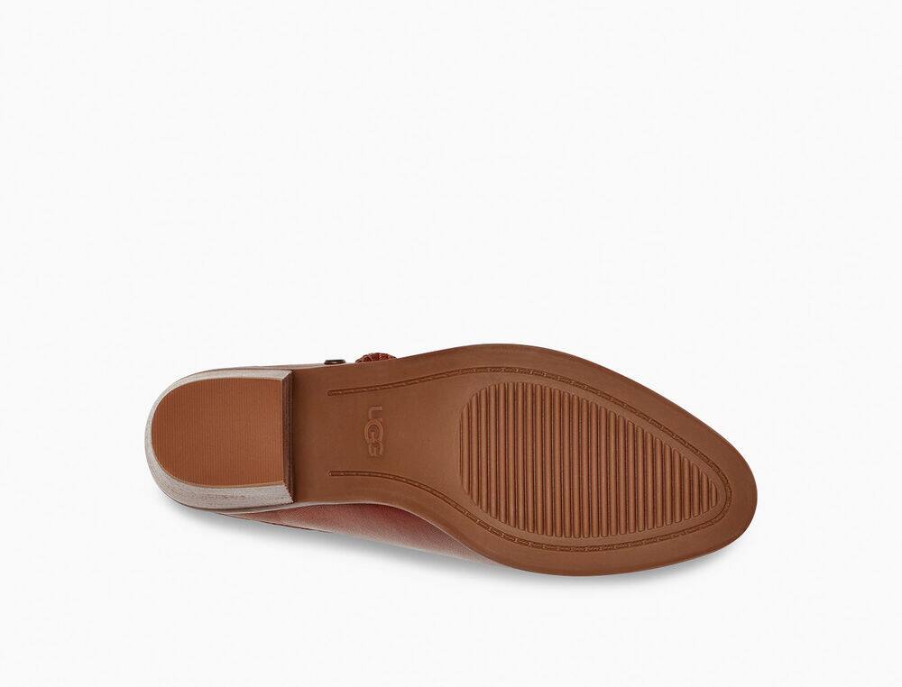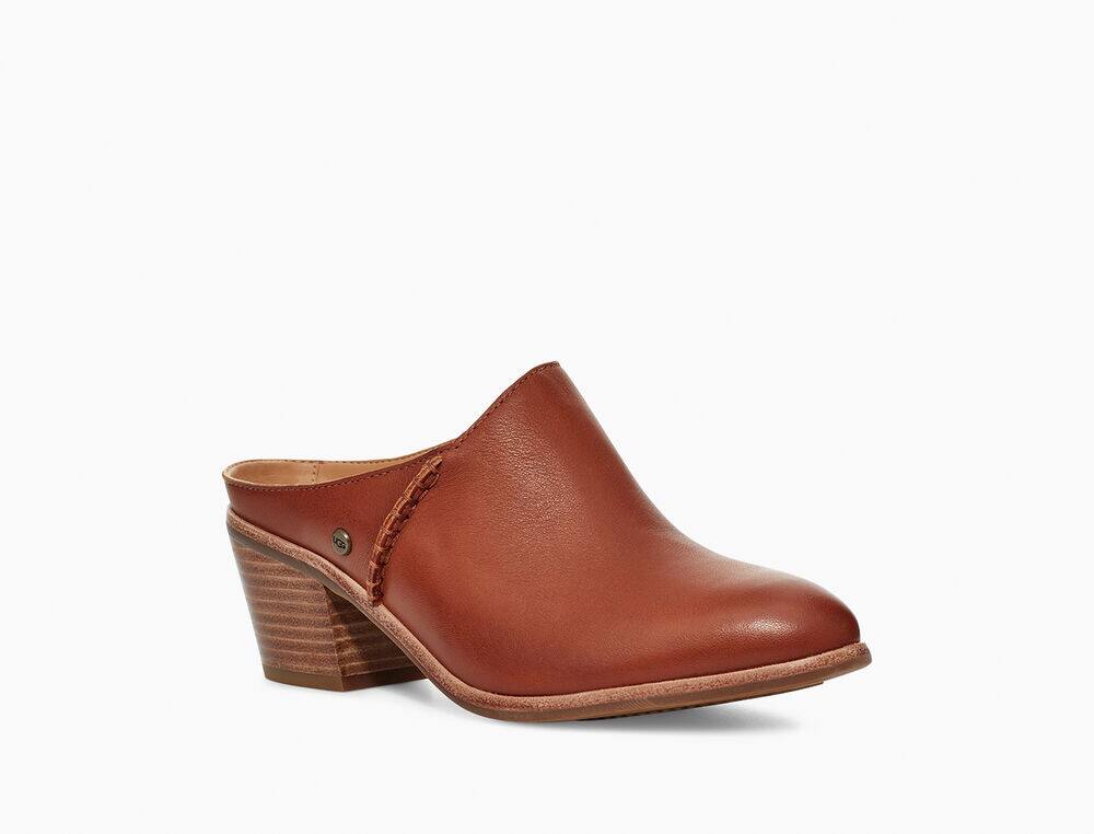 Leather upper Butt-seam detailing Textile lining, Leather heel lining, Synthetic lining Synthetic sockliner & Foam footbed Molded rubber outsole Stacked leather wrapped heel 2" heel height UGG® logo rivet, Heat-embossed UGG® logo Best for: Casual |