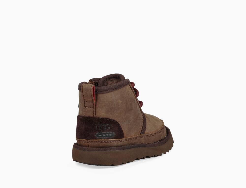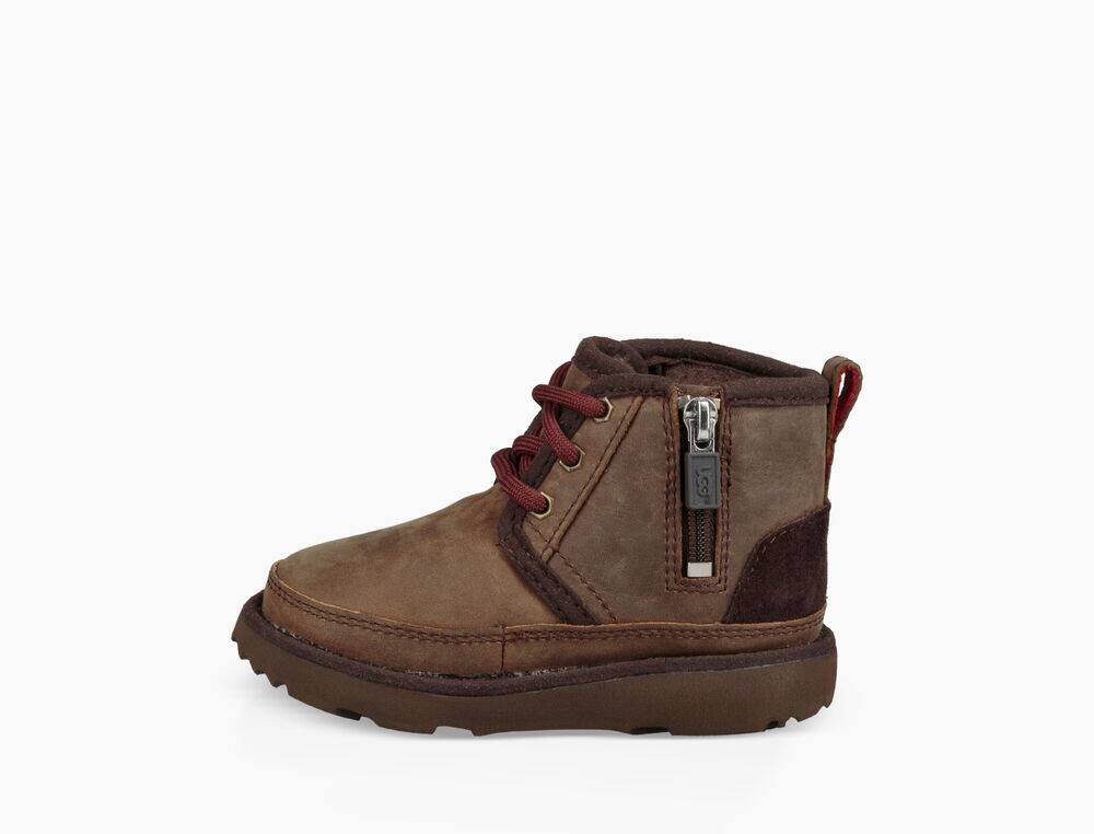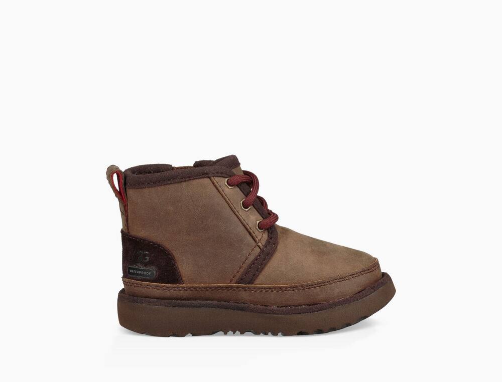 Warm and soft, our best-selling Neumel features ultra-soft UGGpure™ wool lining to keep your little one warm and cozy. Crafted from seam-sealed waterproof leather to help protect against the elements, this chukka is built to move the way kids do, incorporating rocker-bottom construction for a barefoot feel and our super-lightweight outsole for traction and durability.