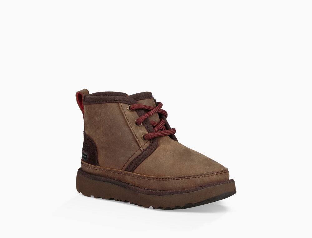 Warm and soft, our best-selling Neumel features ultra-soft UGGpure™ wool lining to keep your little one warm and cozy. Crafted from seam-sealed waterproof leather to help protect against the elements, this chukka is built to move the way kids do, incorporating rocker-bottom construction for a barefoot feel and our super-lightweight outsole for traction and durability.