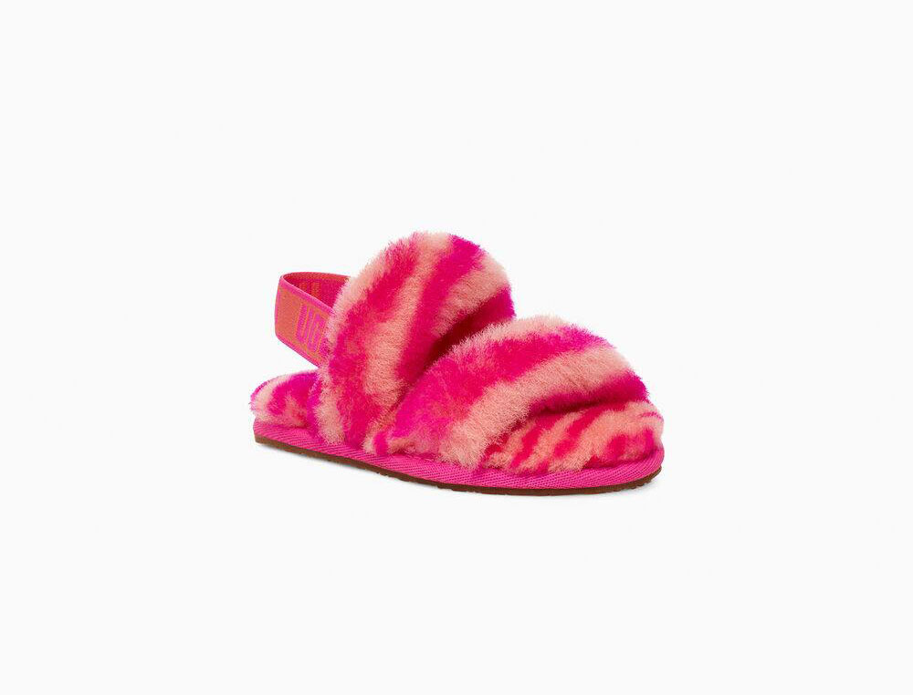This kid-friendly version of our ultra-popular Oh Yeah Slide features fluffy sheepskin with rosy zebra stripes, plus an easy-entry design secured with elastic strapping. Combining the feel of a slipper with a street-ready rubber sole, it steps both indoors and out. Play it with everything from jammies to colorful dresses.