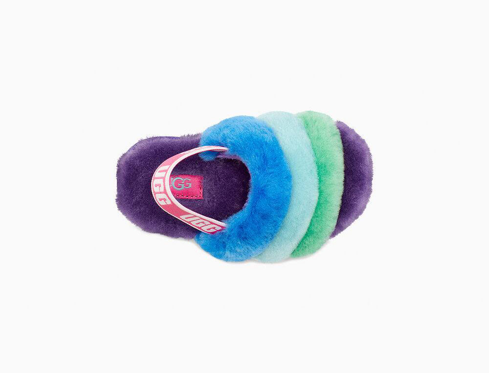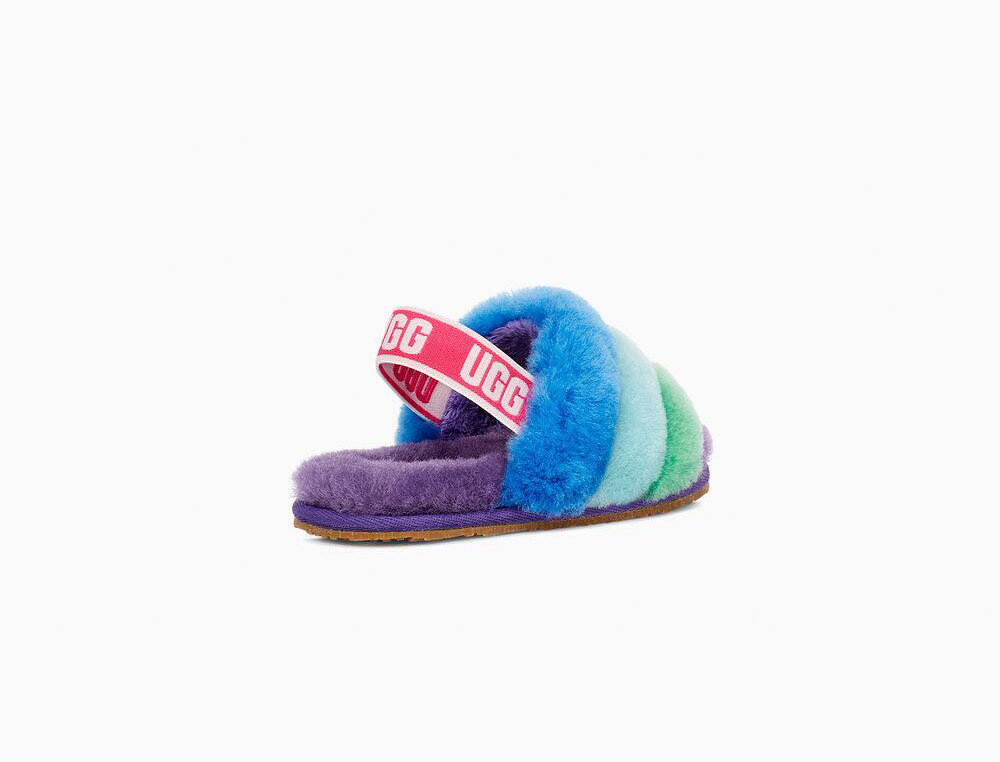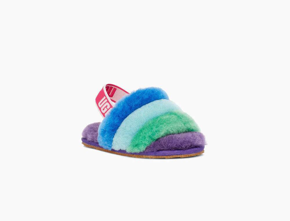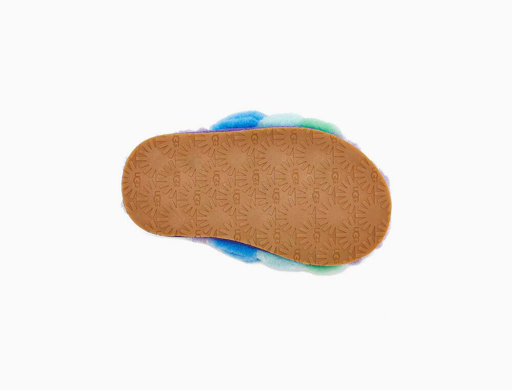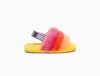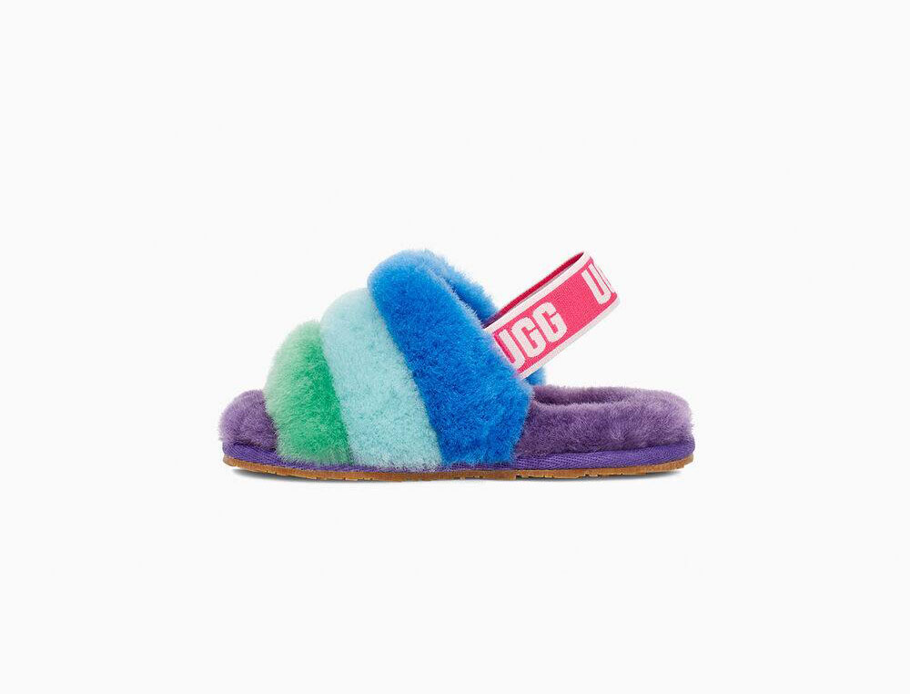 Combining slipper and sandal into an adorable statement shoe, the Fluff Yeah is as good as it sounds, and as soft as it looks. Plush rainbow sheepskin wraps the foot in cozy warmth, while the durable sole and elastic heel strap are ideal for kids on the move. Pair with our matching women's slide for mini-me photo ops.