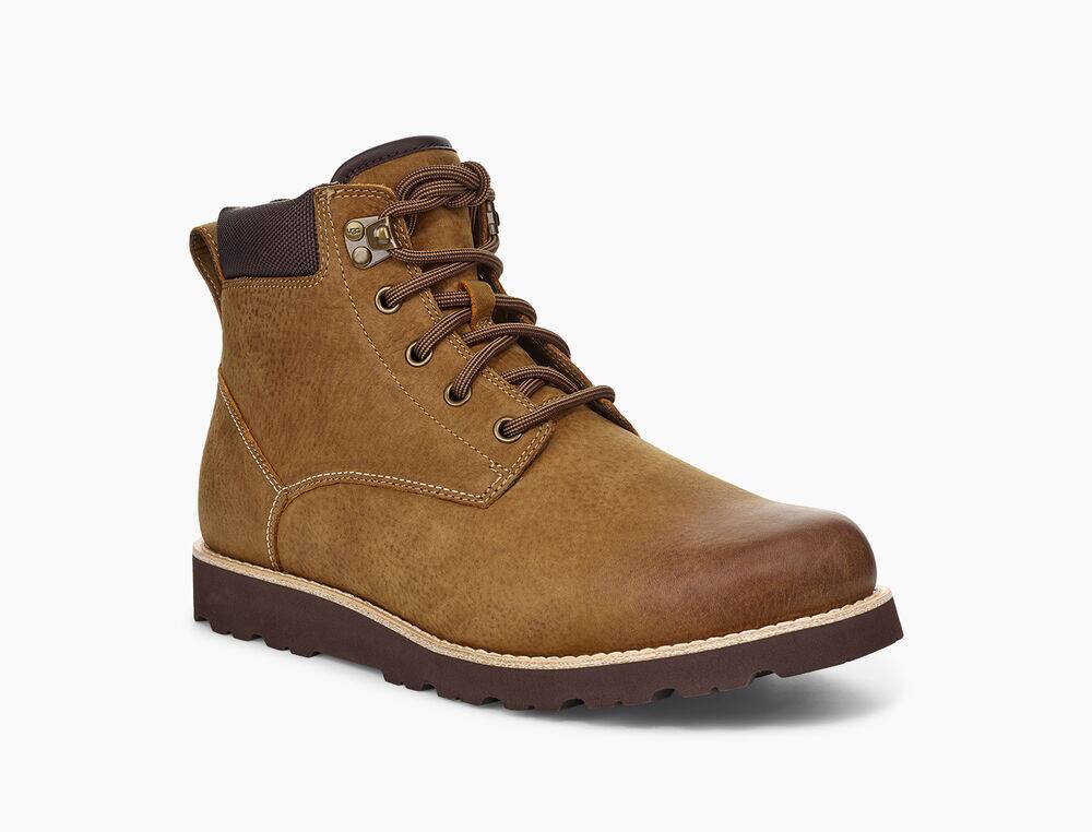 Waterproof Features Seam-sealed construction Waterproof leather Gusseted tongue Metal hardware, Ballistic canvas collar 17mm UGGpure™ wool lining Vildona® and foam lined insole with 17mm UGGpure™ Treadlite by UGG™ outsole for comfort Leather heel label with embossed UGG® logo, Embossed UGG® tongue logo Additional set of laces included Best for: Casual, Light or moderate rain, Light snow |