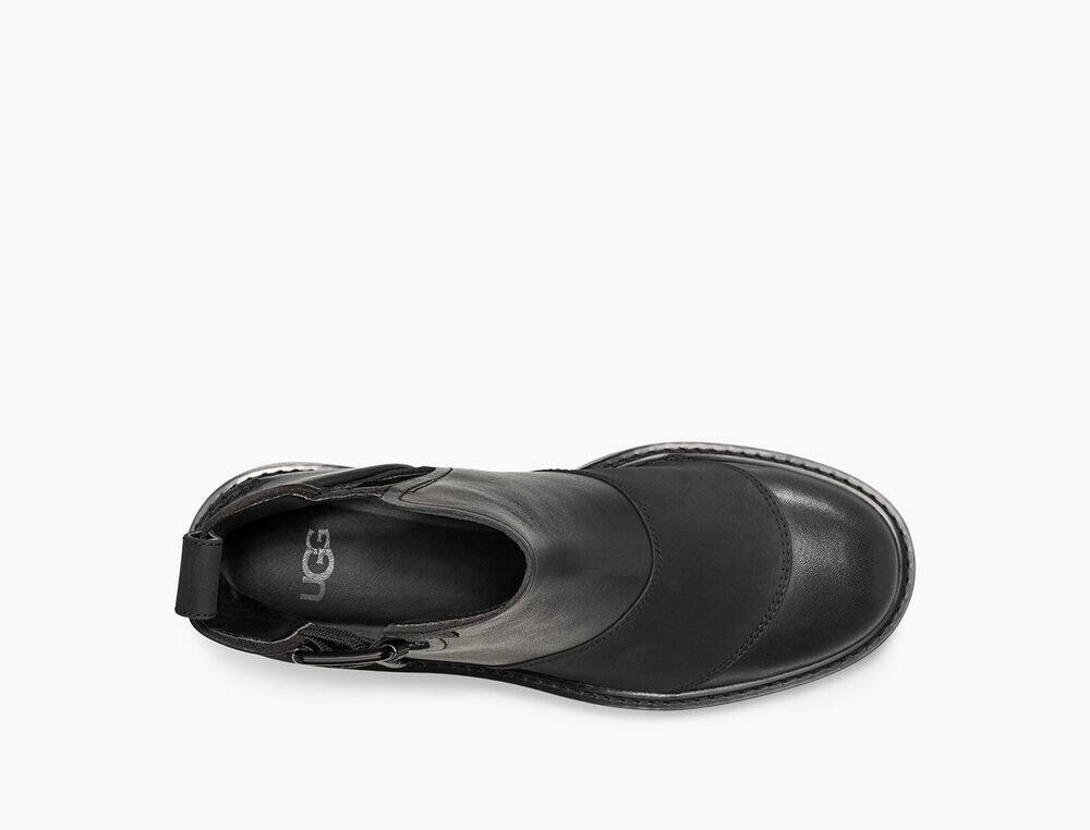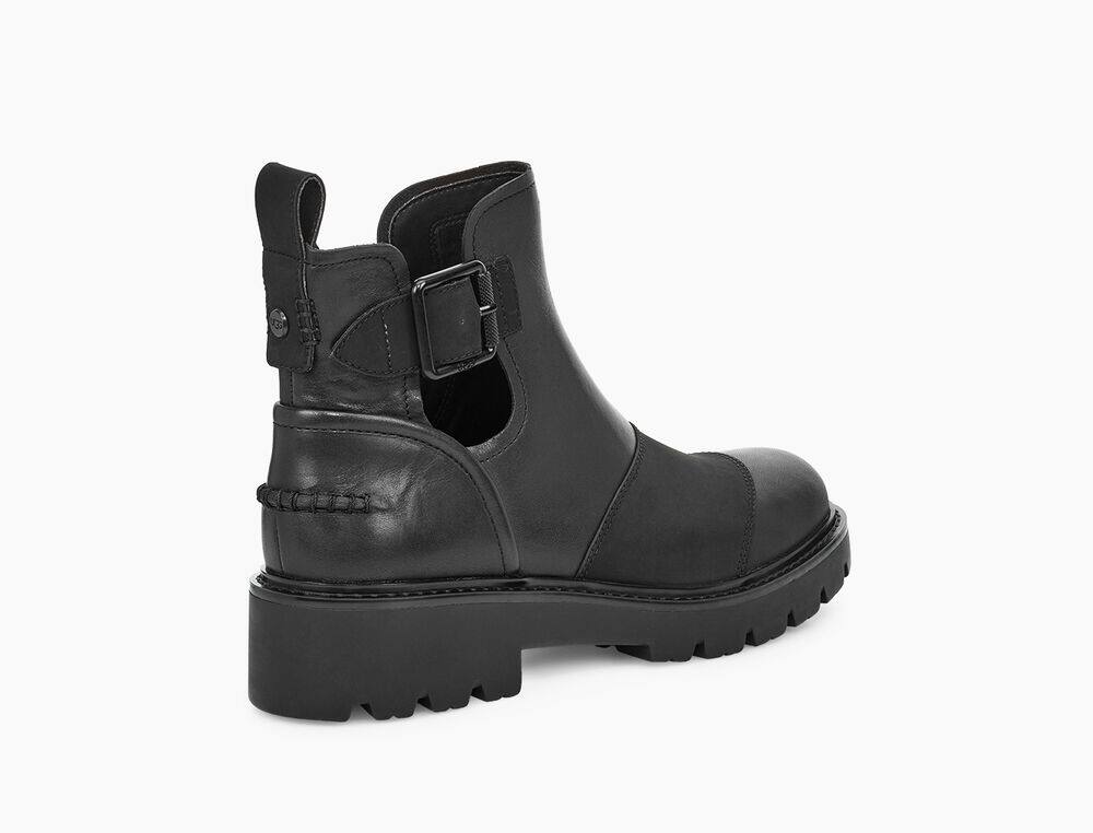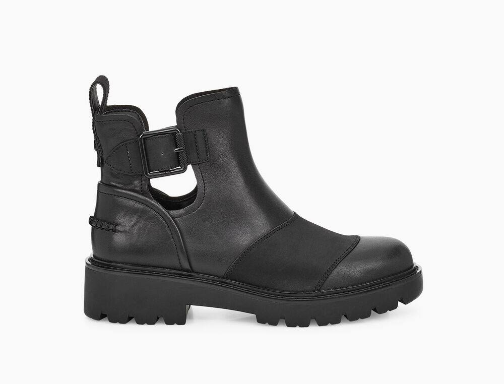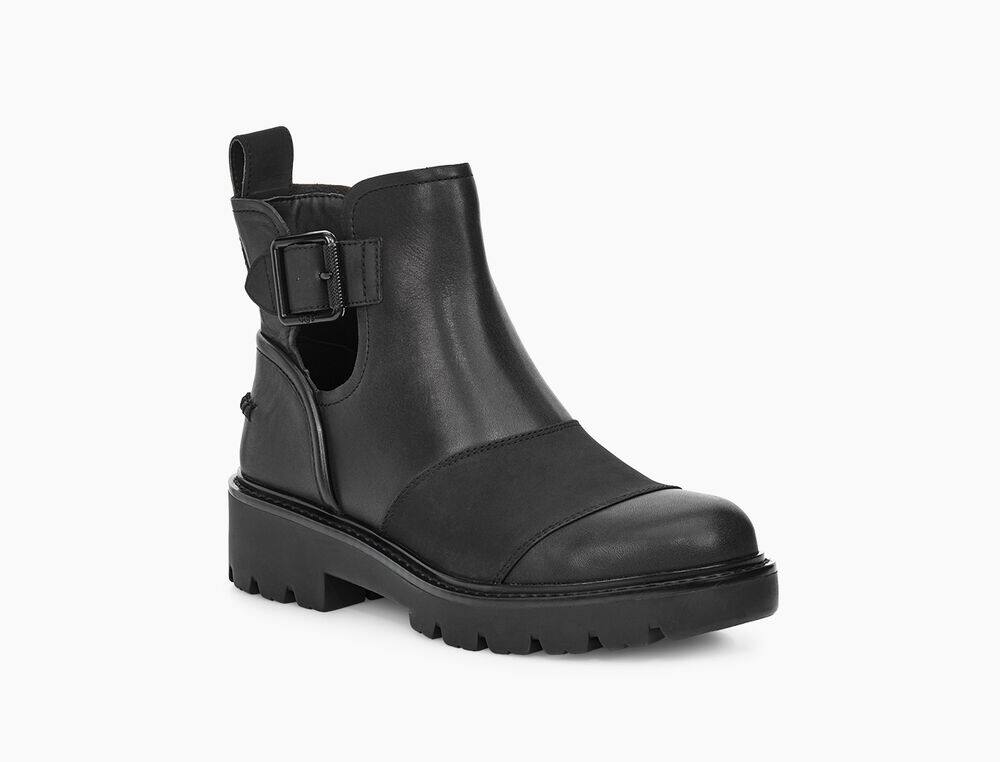 Leather upper with synthetic overlays Synthetic lining Cushioning foam insole lined with synthetic; screen printed UGG® logo branding Leather-like welt Lightweight rubber outsole with UGG® logo branding 4.75” shaft height 1.5” heel height |